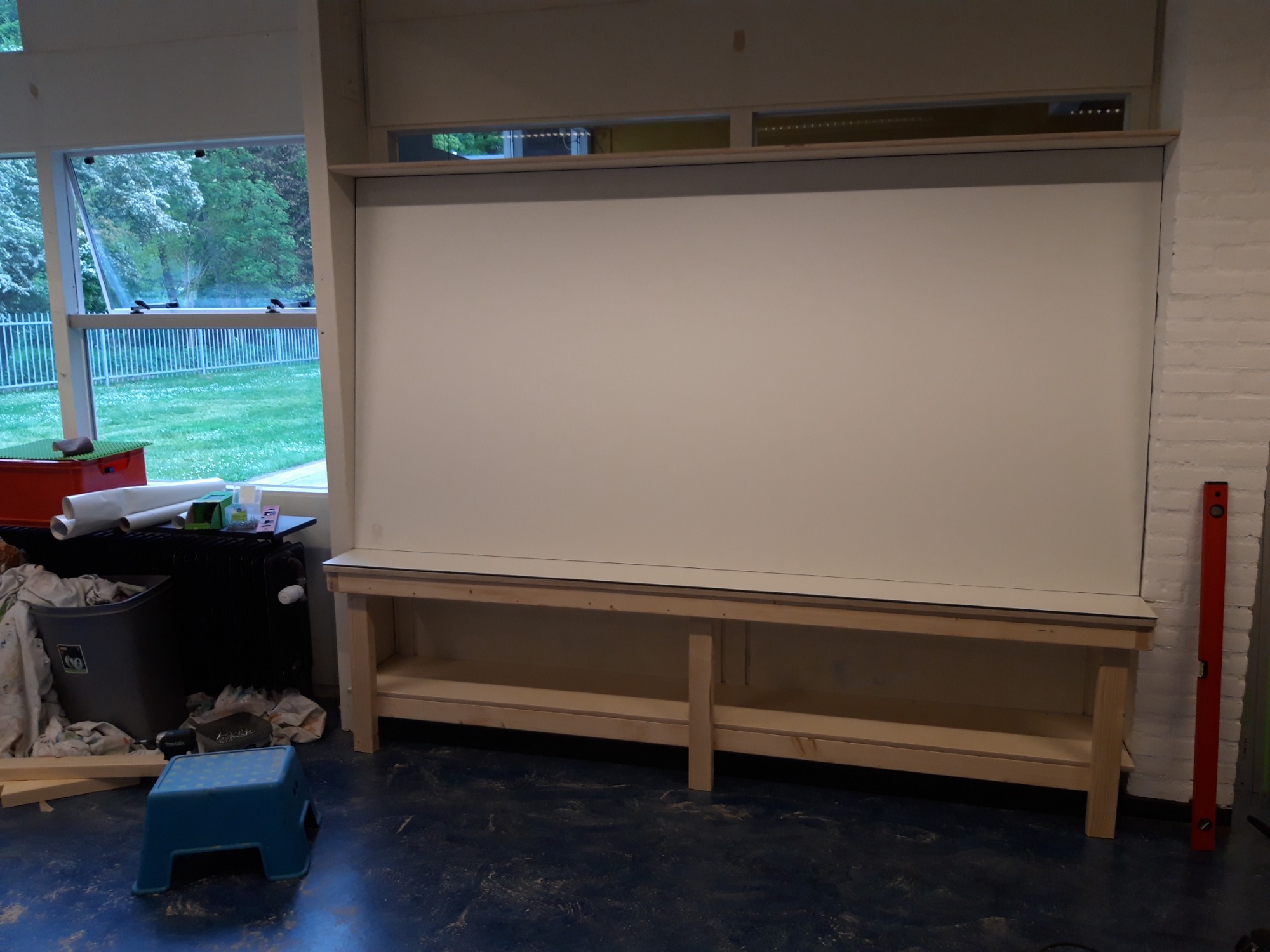 Deze school had een ruimte over waarna de wensen besproken waren en er inmiddels een multifunctionele technieklokaal is gerealiseerd. Mooie opdracht om uit te voeren en nog mooier dat De Handenarbeid Meester er met regelmaat bezig is met diverse groepen leerlingen.